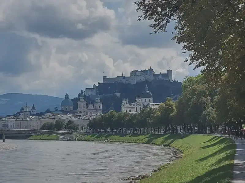 Vi lämnade ett regnigt Wullowitz och styrde kosan mot Salzburg och ställplatsen Reisemobil Stellplatz Salzburg (€25/natt).
