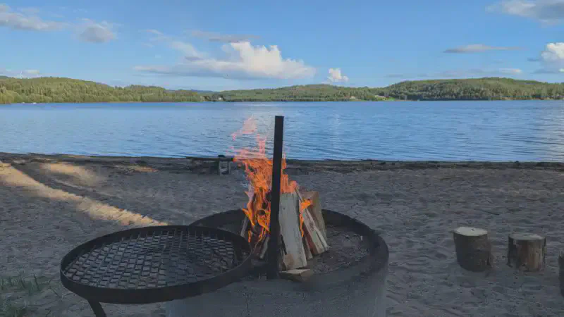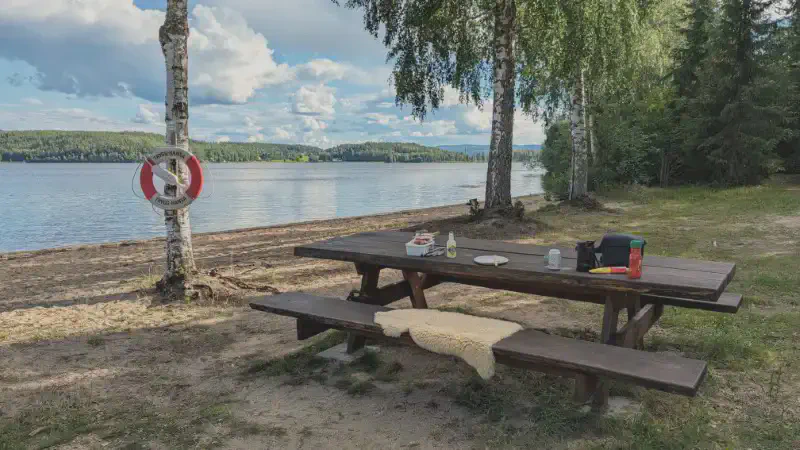 Första parkett mot vattnet, helt ensamma, grillplats, bord att sitta vid och gratis ved.