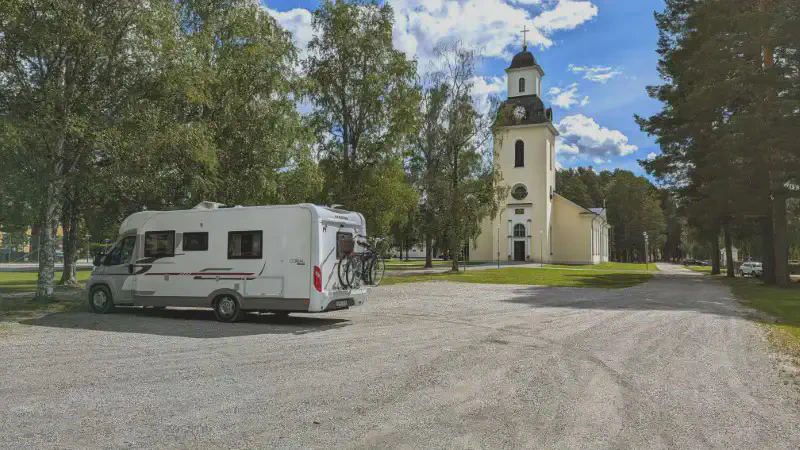 Strömsund var dagens mål men vi gjorde ett snabbt stopp efter vägen vid Ramsele kyrka och värmde lunch i husbilen. Vi såg förresten resans första ren på vägen mellan Ramsele och Strömsund men hann tyvärr inte fota.