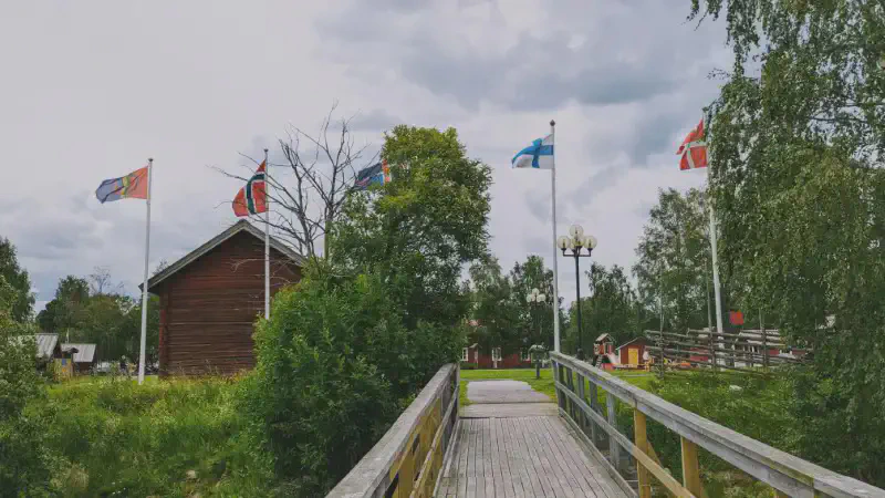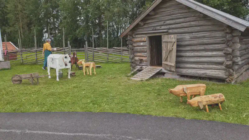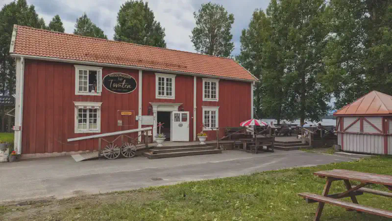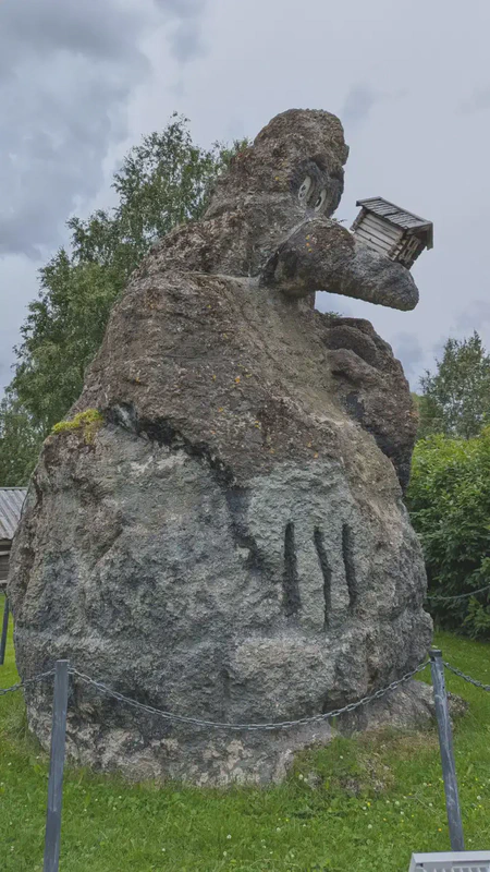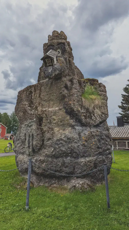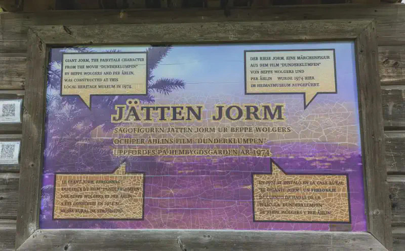 I Strömsund träffade vi en kompis till Mathias och tog en fika med honom på hembygdsgården, där finns en stor staty av jätten Jorm från filmen Dunderklumpen.
