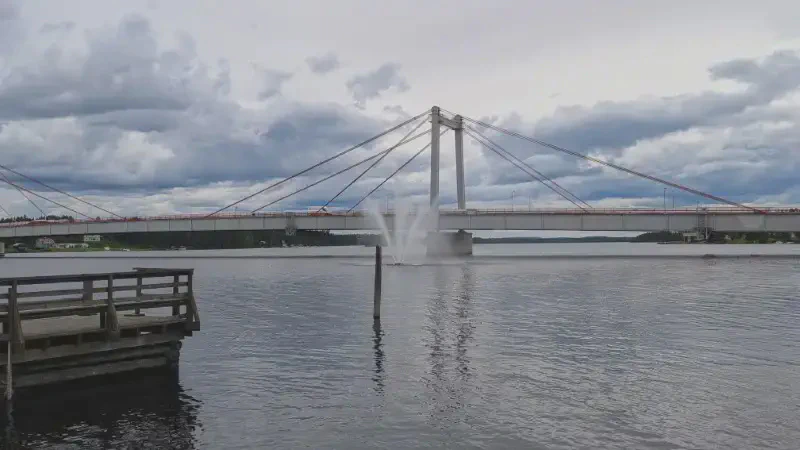 Tog en rejäl sovmorgon och vaknade pigga och utvilade vid Prästmon, Höga kusten där vi övernattat. Det blev ett uppiggande morgondopp i Ångermanälven och ca 20° i vattnet.
