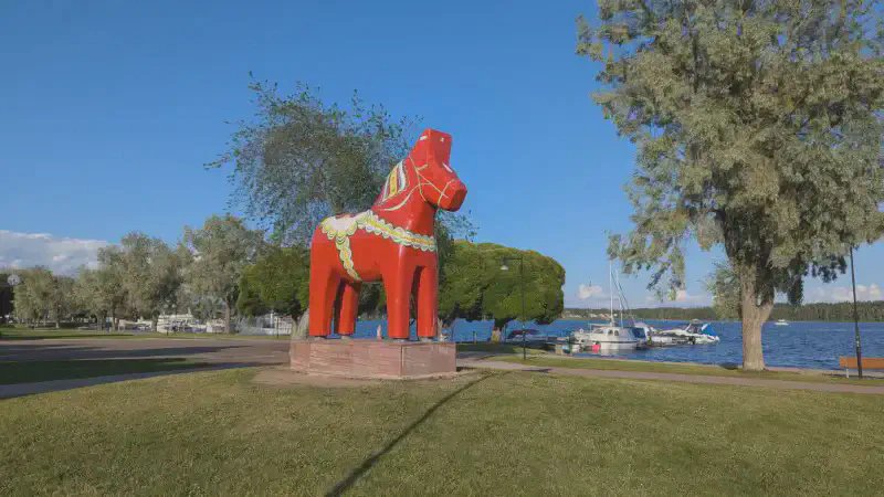 Det blev en längre körsträcka idag än de flesta dagar, ca 33 mil från Östersund ner till Mora där vi är i skrivande stund. Står vid Tingsnäsvägen, en stor p-plats som finns med i Park4night. Här finns bad med bryggor och en ramp för rullstolsburna, så fin service tycker vi. Det finns även omklädningsrum och en lekpkats med sittbänkar för fika eller picknick. Vi kom hit ganska sent, runt 17.30 eftersom vi var in och handlade på Ica Maxi i Östersund innan vi lämnade och stannade efter vägen och gjorde lunch. Vid ankomst blev det grillat och efter maten tog vi en promenad in mot centrum på promenadstråket efter vattnet. Förstås blev det en glass på glassbåten som är ett populärt glasscafé här på sommaren, gör ett besök om ni är här i Mora. På Siljan var det full aktivitet med båtar, stora som små, jet-skis, flottar och barn som åkte ringar efter båt.